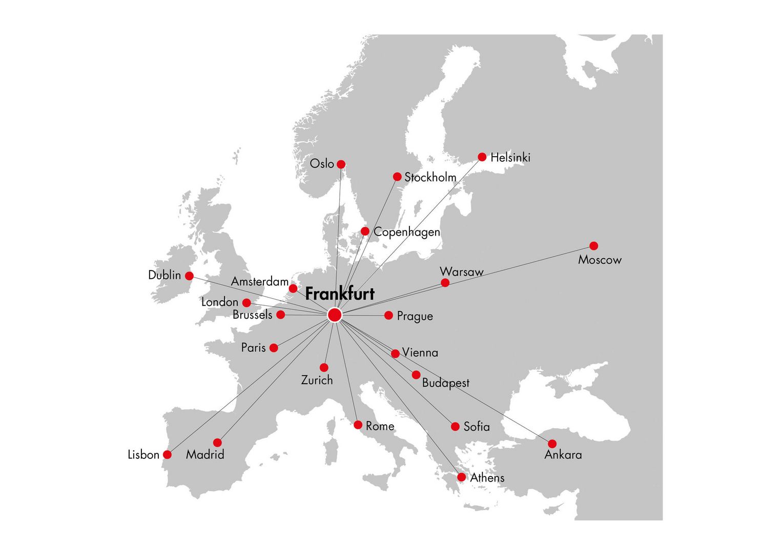 Centrally situated in the heart of Europe, Frankfurt is one of the continent’s leading traffic and transport hubs, a destination that’s easy to reach from all across the globe.